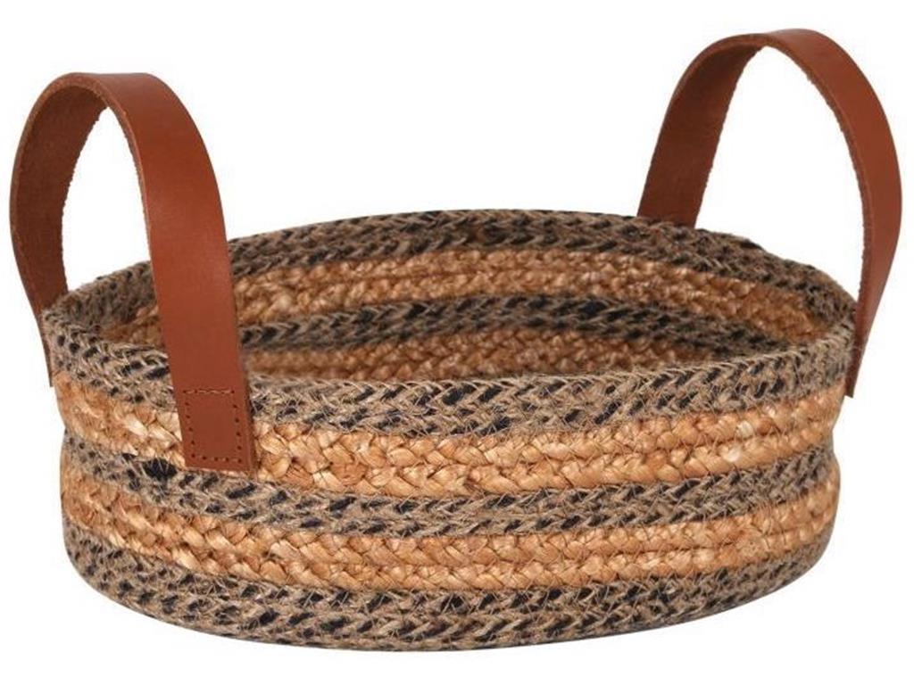 CESTA YUTE C/ASA PIEL 25x18x8cm. &