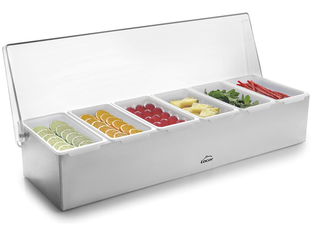 CONTENEDOR COCTAIL INOX C/TAPA 6 COMPARTIMENTOS