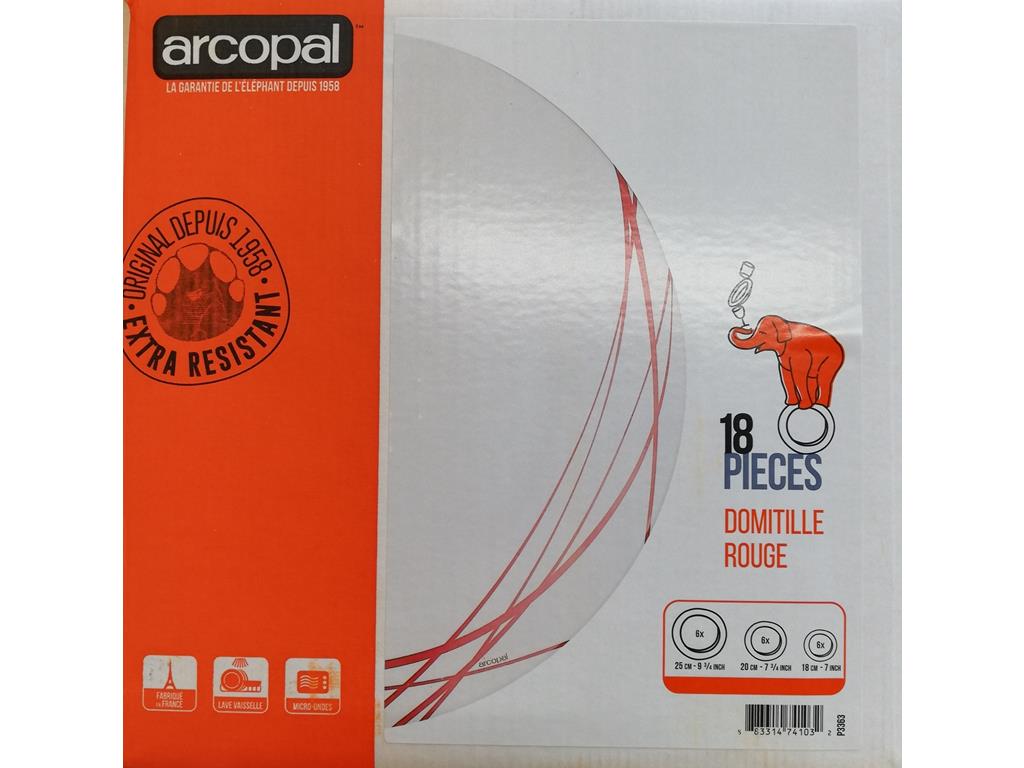VAJILLA OPAL 18 Pz. DOMITILLE ROJO ARCOPAL